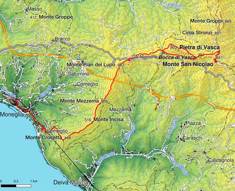 There's a two hour coastal walk to nearby Deiva Marina over the Punta Rospo or for the less adventurous who would like to limit the amount of climbing we'd suggest getting a ride up to the Via Aurelia and then east along the ridge line over the Passo del Bracco. The owner of our b&b kindly gave us a ride up to the via Aurelia when we did this walk ourselves.